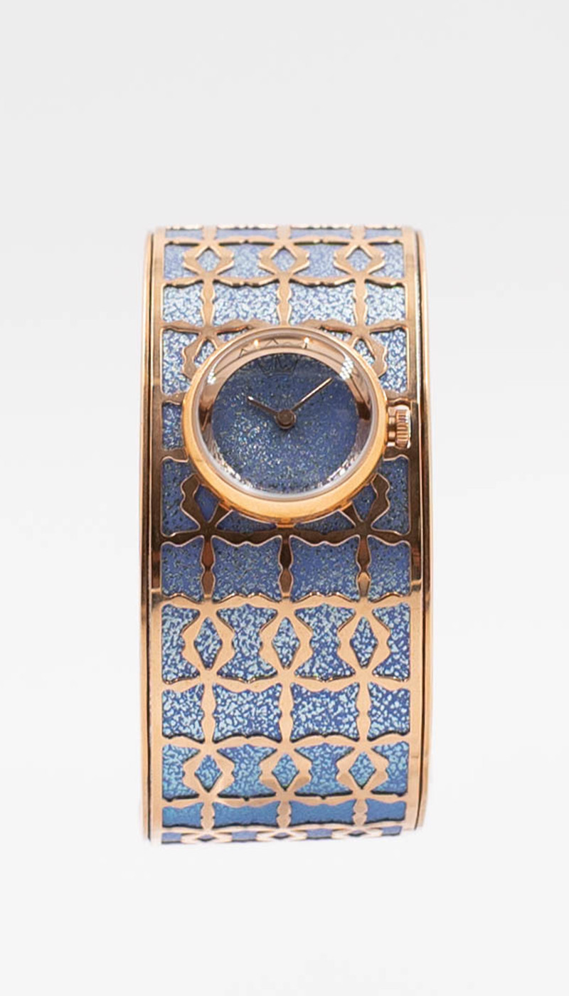 - Couleur Bracelet : doré cuivré avec motifs en reliefs bleu nacré