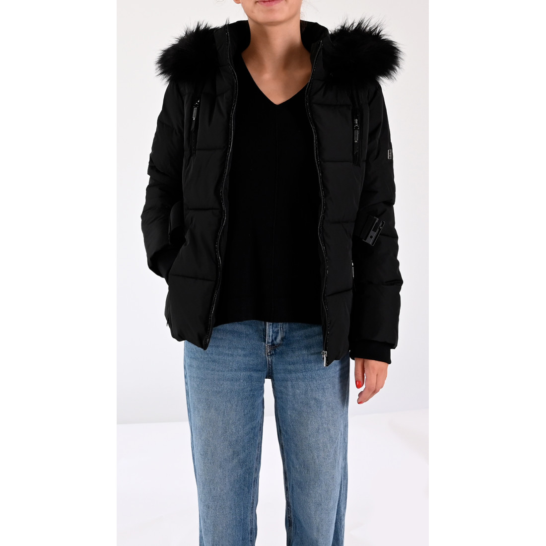 • Capuche avec fausse fourrure amovible