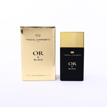 Or Black, un parfum luxueux et puissant aux accords vifs et masculins, une fusion d'épices, de fougère et de nuances ambrées.